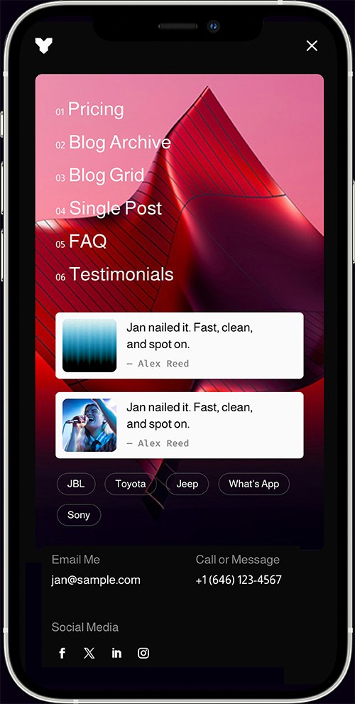 Our custom mobile menus offer smooth navigation, easy customization, and built-in animations.